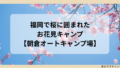 桜に囲まれてキャンプができる!福岡・朝倉オートキャンプ場の魅力を子育てママ目線でリポート。水灯桜のイベント期間中はライトアップされた夜桜が見もの。料金・アクセス情報、おすすめ周辺グルメも紹介。