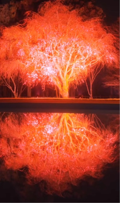 キャンプ場に隣接する「アクアカルチャーゾーン」で、桜のライトアップ「水灯桜(すいとうよう)」が行われます。夜空に浮かぶライトアップされた桜は、昼間とはまた違う美しさで夜桜鑑賞ができる、これぞお花見キャンプの真骨頂です。