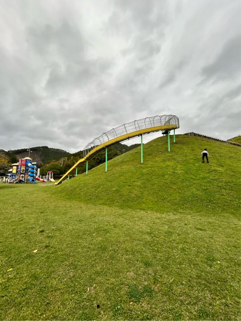 「あまぎ水の文化村 スポーツ広場」の遊具で遊べて、子どもが大はしゃぎ。