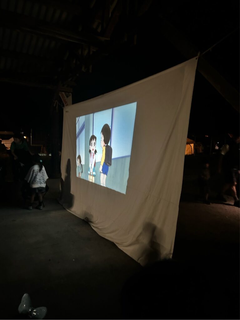 プロジェクターで子ども向けの番組を流してくれていたのですが、私が準備していたポップコーンを持っていき、お友達と食べながら2時間ほどテントに戻って来ず、私が寂しくなるくらいでした笑